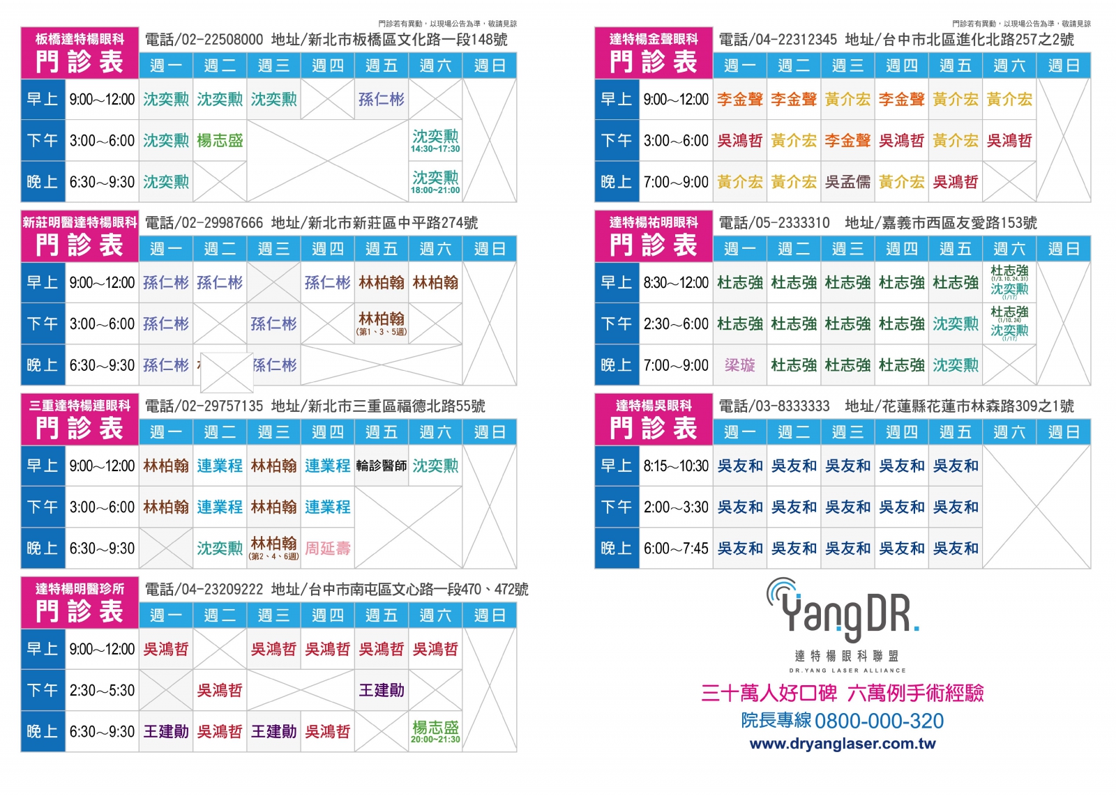 Home最新消息院所公告 2026-01-01 院所公告達特楊1月份一覽門診表 分享到Facebook 分享到LINE 複製此頁連結 ※ 門診情形若有異動,以現場公告為主,敬請見諒 ※ 2025-12-26 😱 飛蚊症別輕忽!中年男視力一度剩0.1,差點失明⚠️ BACK