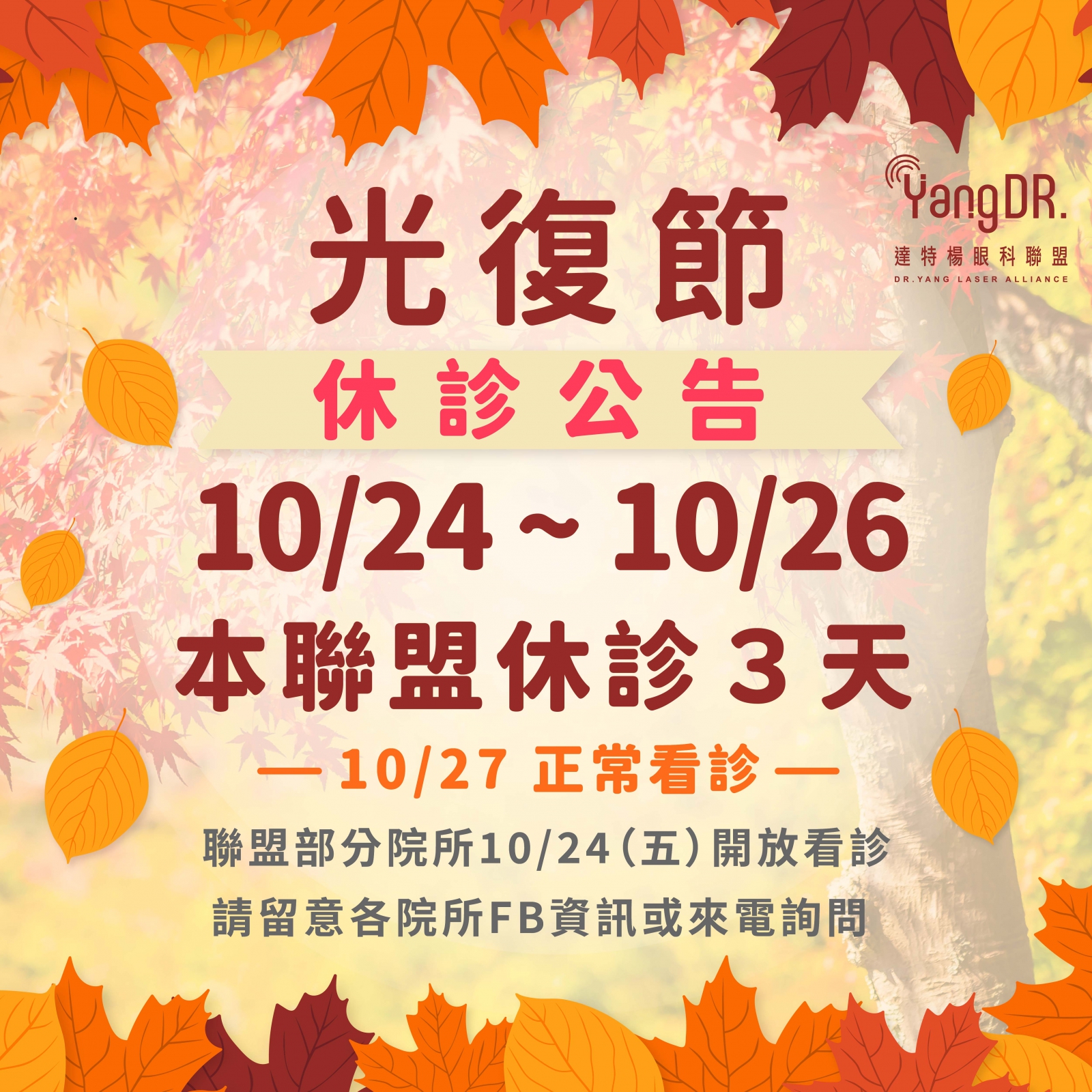 ✨ 趁著光復連假,也別忘了順便關心自己的視力,讓眼睛一起享受最清晰的秋日風景 🍁👀